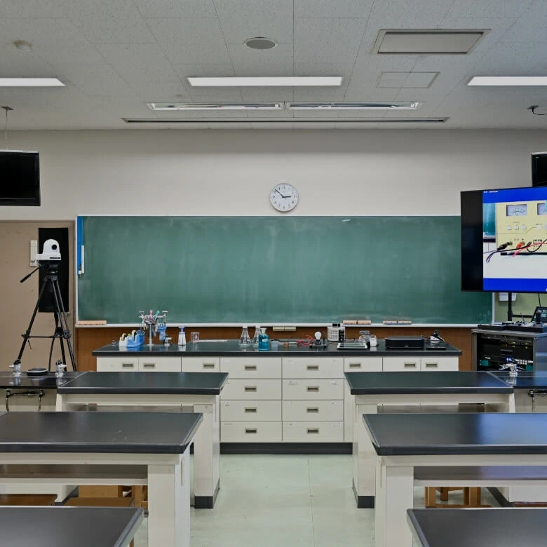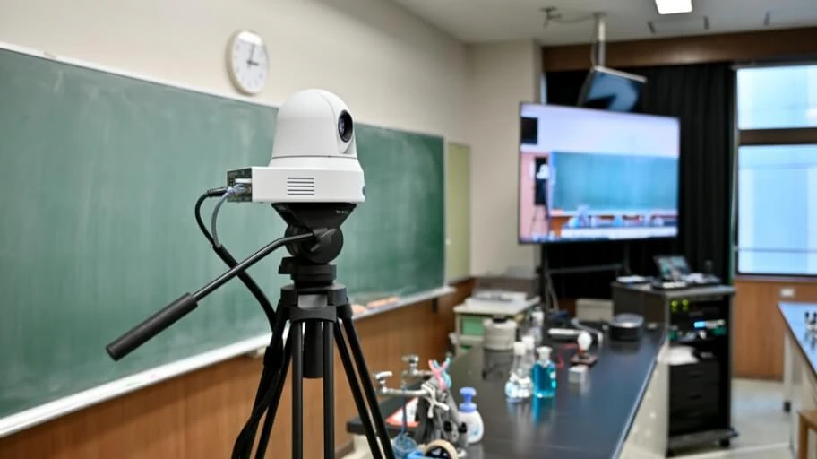 物理化学室に設置されたPTZオートフレーミングカメラ『SRG-A12』(教室後方)
