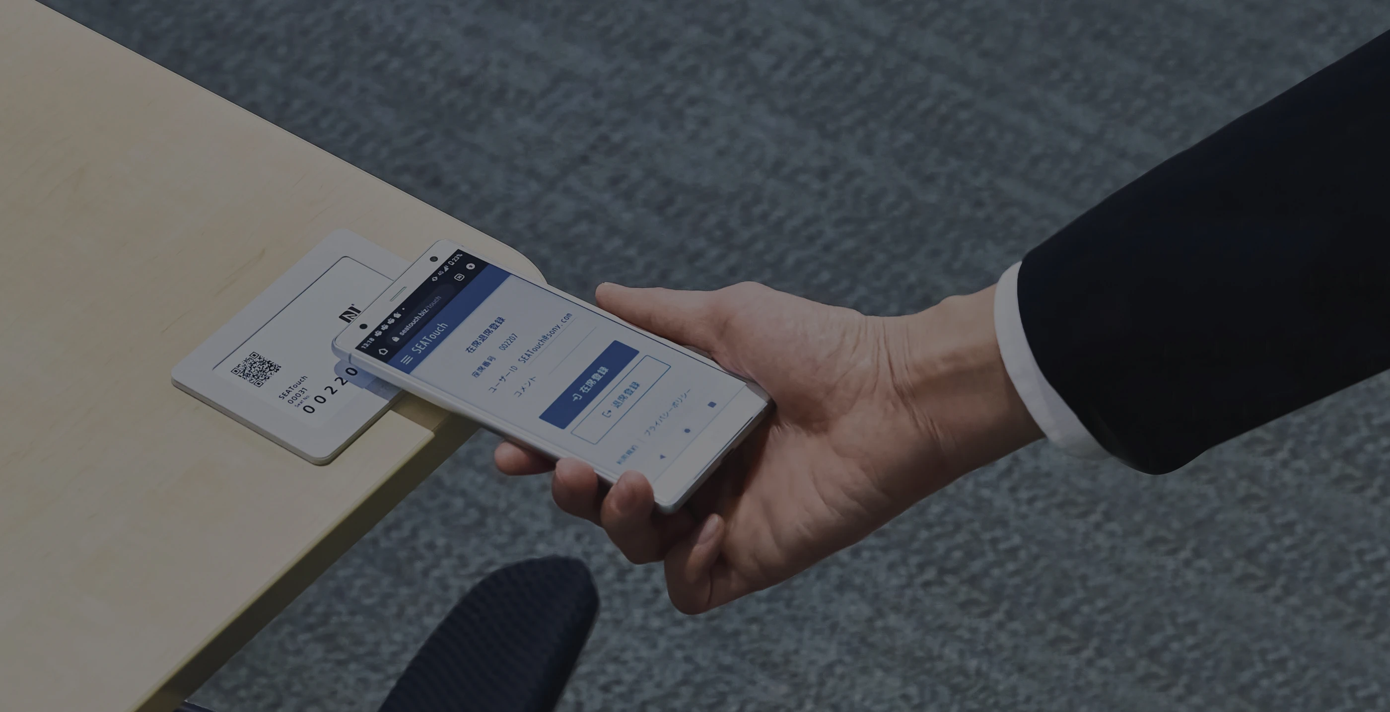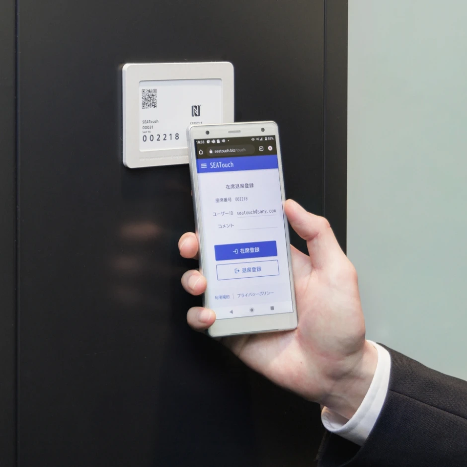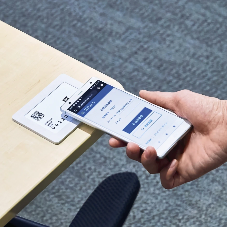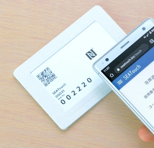 座席に設置したカードにスマートフォンをタッチして座席登録ができる、
