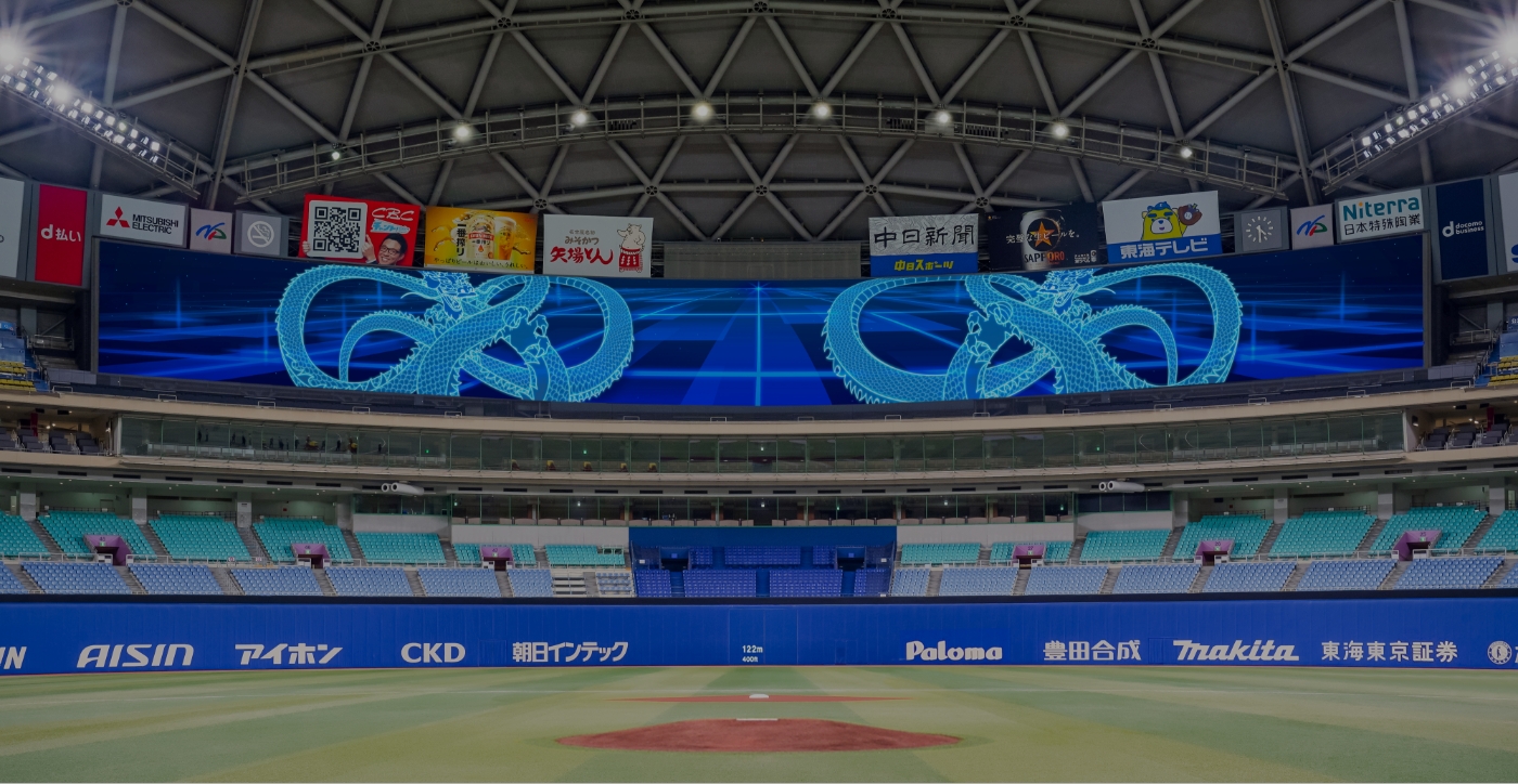 2025年2月にビジョンの更新が完了し、3月1日のオープン戦から本格運用が開始されました。3面構成から1面構成になったことで、ビジョンとビジョンの間に継ぎ目がない、よりダイナミックな映像演出が可能となっています。新ビジョンを目にした中日ドラゴンズの選手からも驚きの声が上がり、ご来場いただいたお客さまからも非常にご好評いただいています。これからも、ビジョンの演出も目的の一つとして足を運んでいただけるような体験価値を提供し、野球やその他のスポーツ、イベントを心から楽しんでいただける新しい観賞スタイルを模索していくということです。