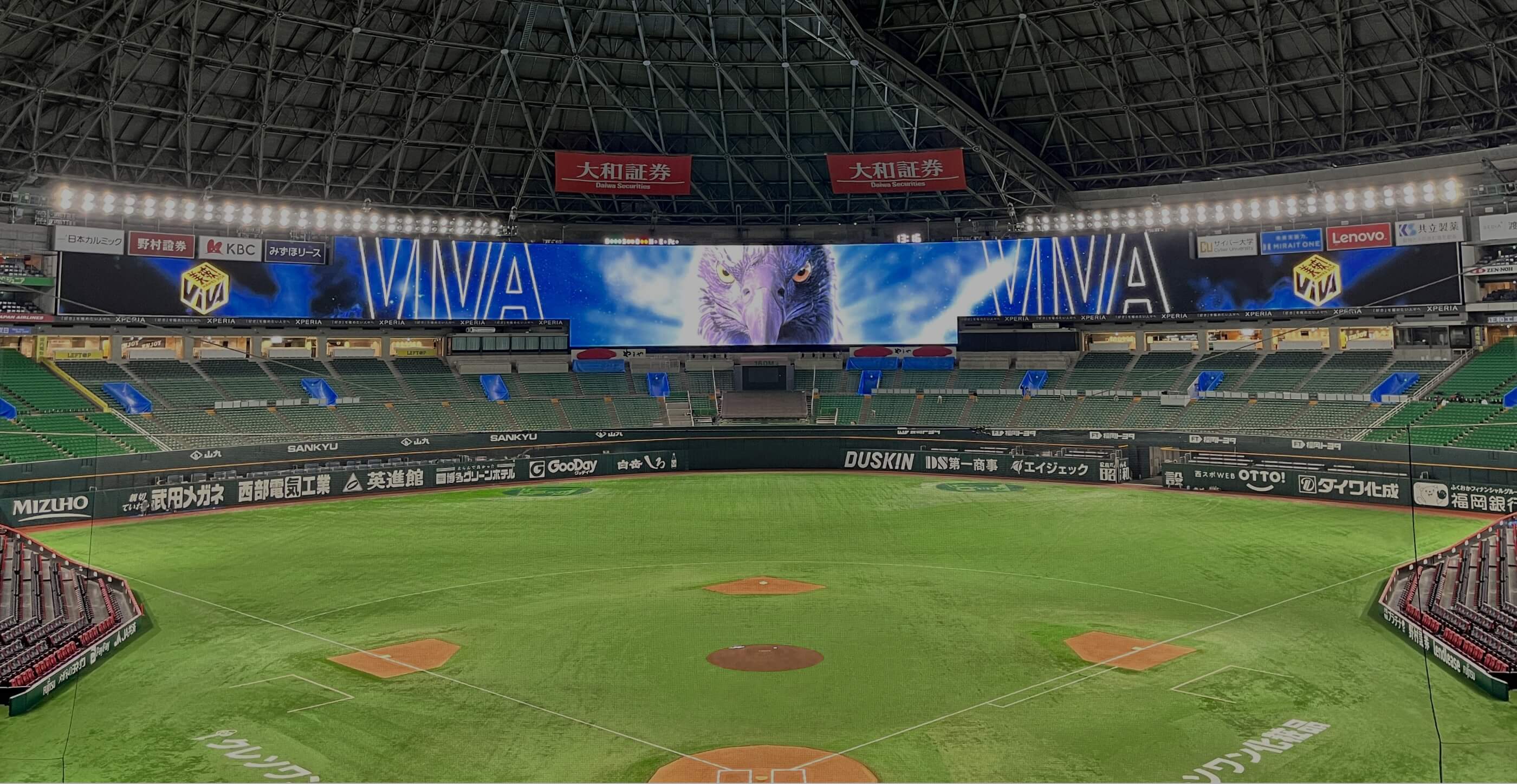 2023年、球団創設85周年とドーム開業30周年のダブルアニバーサリーイヤーを迎えた福岡ソフトバンクホークス。同年は、運営する『福岡PayPayドーム』(所在地:福岡市中央区)内に設置された大型映像装置『ホークスビジョン』の更新時期でもあり、リニューアルに合わせて左右部分に大型LED表示装置4基と、新たに総合演出システムを納入。2024年2月にシステムを設置し、3月より本格運用が開始されました。
