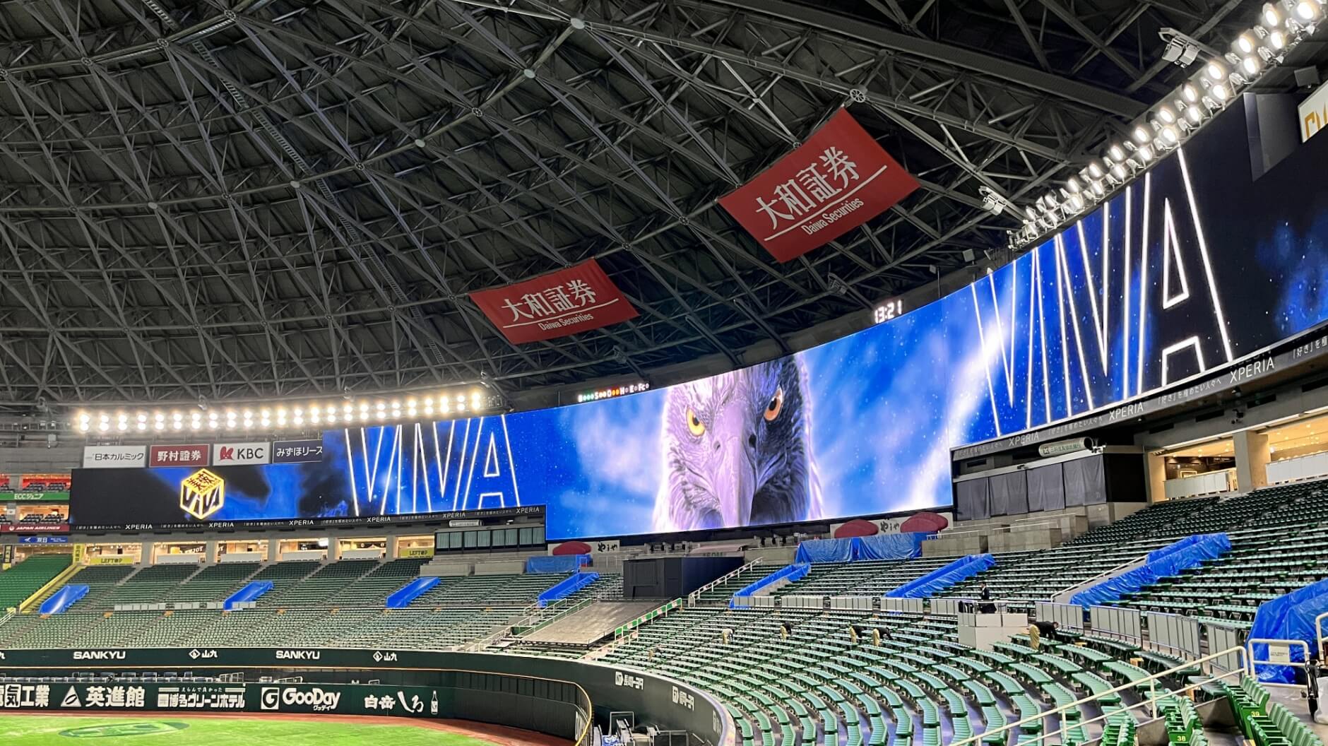 2023年、球団創設85周年とドーム開業30周年のダブルアニバーサリーイヤーを迎えた福岡ソフトバンクホークス。同年は、運営する『福岡PayPayドーム』(所在地:福岡市中央区)内に設置された大型映像装置『ホークスビジョン』の更新時期でもあり、リニューアルに合わせて左右部分に大型LED表示装置4基と、新たに総合演出システムを納入。2024年2月にシステムを設置し、3月より本格運用が開始されました。