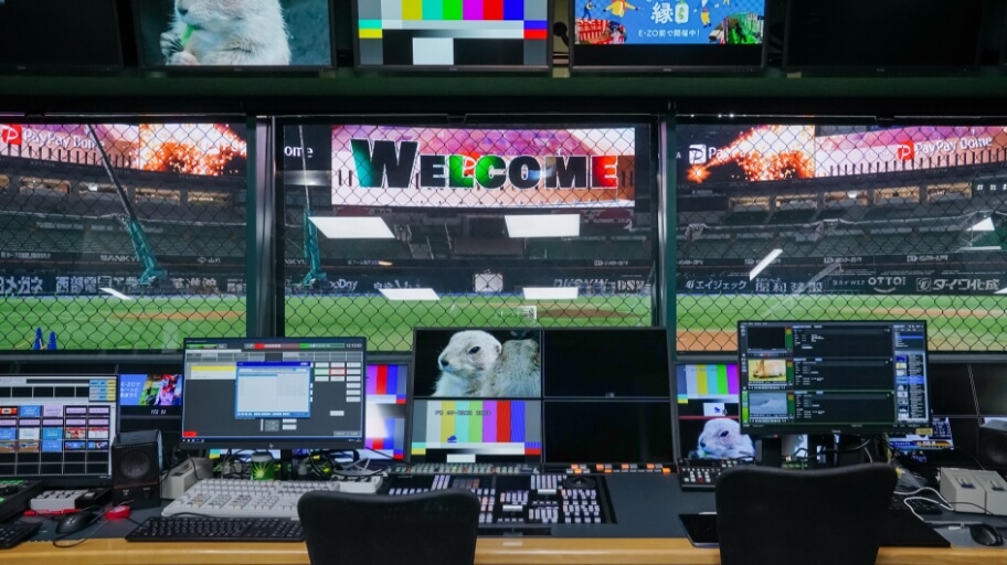 また、映像装置の更新に合わせて、ソニーの新たな総合演出システムも提案。MLBでも数多くの納入実績がある送出機材と、各機材のポテンシャルを引き出す運用アプリケーションを採用いただきました。これにより、「データと動画が連動した多彩な演出」が可能に。たとえば選手がホームランを打った際、実際に打つシーンの映像とともに、シーズン第何号のホームランかに加え、打球速度や角度、飛距離などのデータを瞬時にディスプレイに表示する、といったことができるようになりました。2023年のアニバーサリーイヤーに「思い出を、超えていけ。」というキャッチコピーを掲げた福岡PayPayドームにふさわしい、これまでの思い出を超えるような、新たな体験価値の創出を実現します。