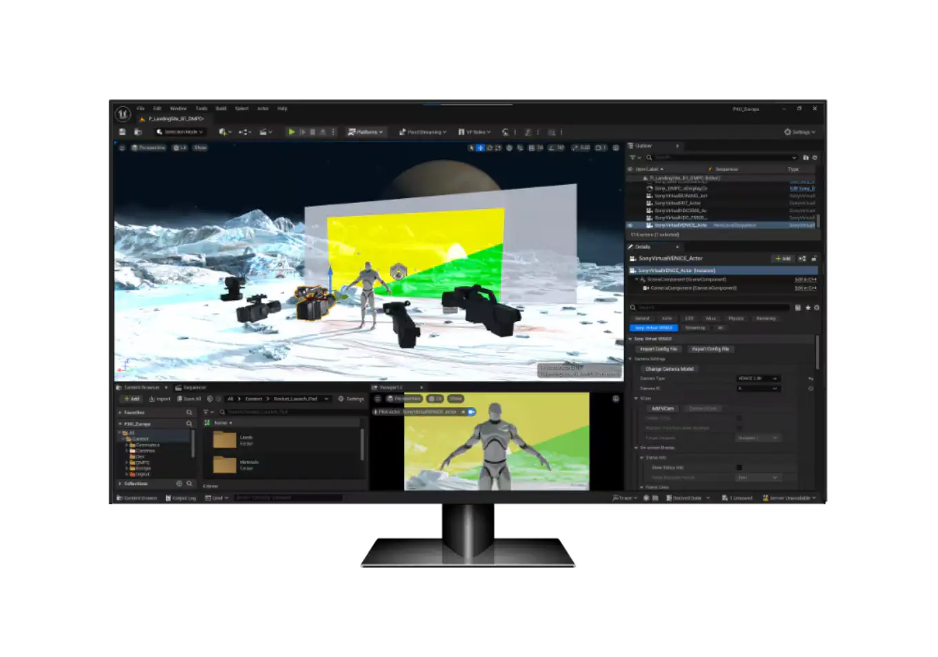 Unreal Engine上でVENICEとLEDを仮想的に準備します。このプラグインを使用すると、撮影に入る前にルックとカメラ設定を自由にデザインできます。イメージャーモードから絞り、NDフィルター設定、細かな色調整まで、すべてをUnreal Engine上で事前に調整し、シミュレーションできます。アートディレクションからLEDの表示映像、VENICEの記録映像まで、一貫したカラーパイプラインを維持できます。